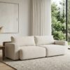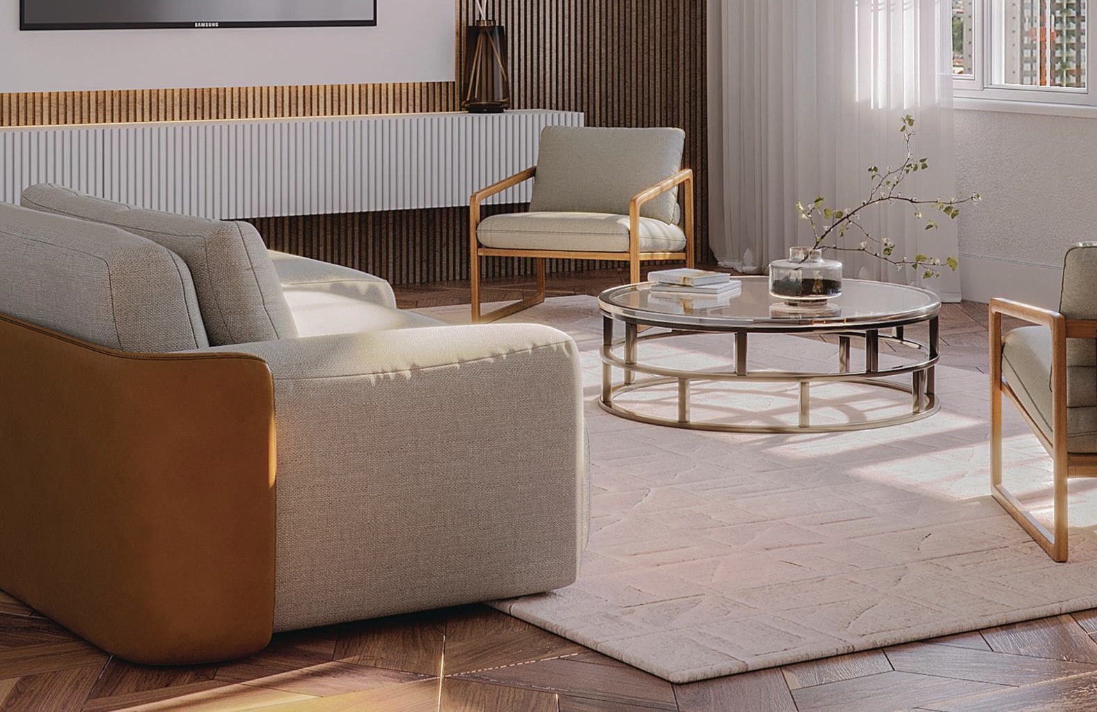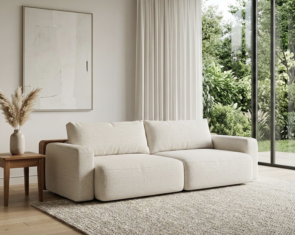 Sofá Grécia com estrutura produzida em painéis estruturais de alta precisão e tecnologia TechShield, garantindo excelente resistência, maior durabilidade e proteção contra umidade. O assento é retrátil e combina espuma D-28 com percintas elásticas de 60 mm, além de molas ensacadas e molas bonnel, entregando sustentação firme e conforto constante para o uso diário.