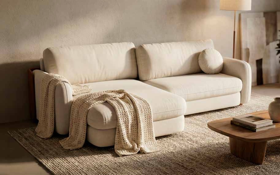 Visual contemporâneo com traços orgânicos e acabamento que valoriza materiais naturais. A proposta entrega uma experiência de conforto mais ampla e relaxante, com presença marcante e fácil adaptação a ambientes modernos e acolhedores.